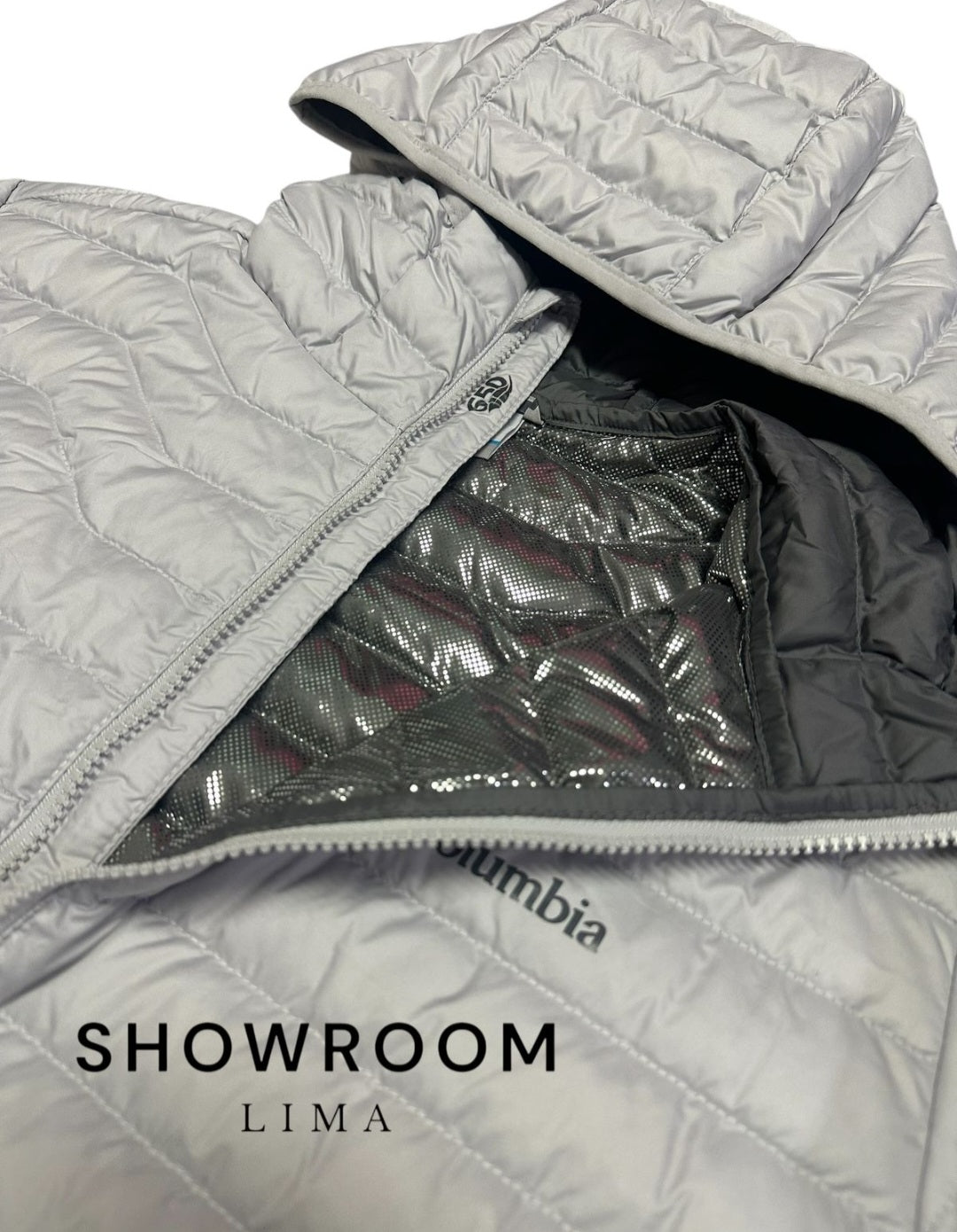Casaca columbia hombre color marfil, omni heat, gramaje 650 con capucha  talla S-M